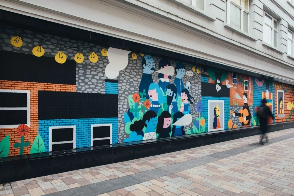 Additional murals here were commissioned by Meta (Dublin), Belfast City Council and UsFolk Illustration Agency (Belfast).